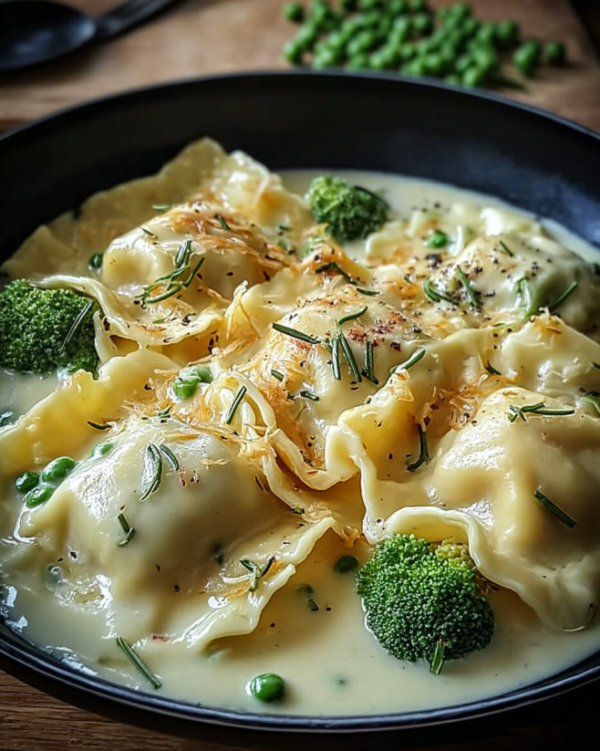 Maultaschen in Käse Sahne Soße sind ein Genuss!